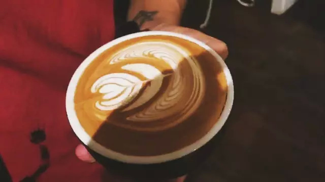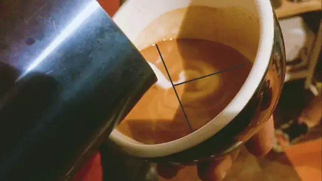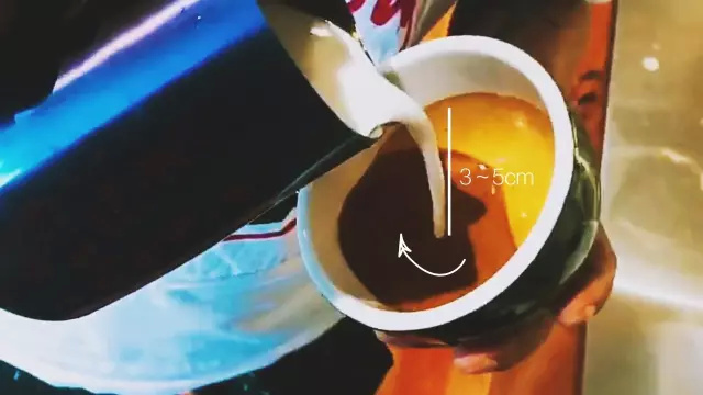 1.傾斜咖啡杯,對準濃縮咖啡液面中央