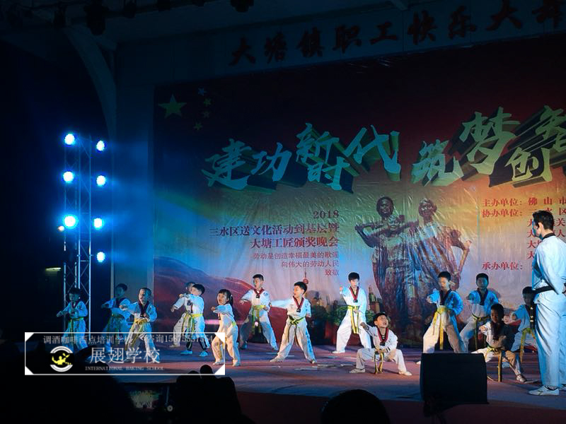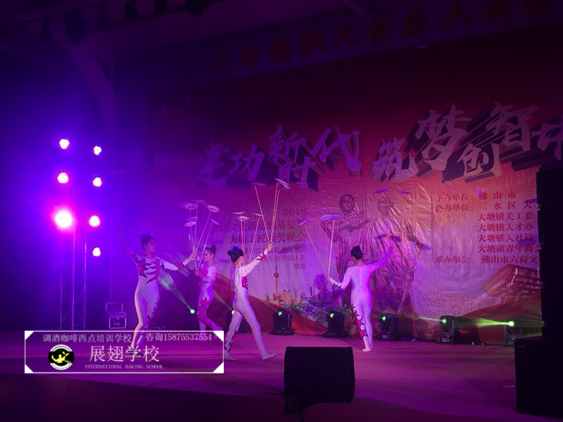 2018年5月5日,佛山展翅調酒咖啡西點培訓學校的調酒師參加了2018三水區送文化活動到基層暨大塘工匠頒獎晚會,并作為表演嘉賓為現場獻上了一場精彩的花式調酒表演。勞動是創造幸福最美的歌謠,向偉大的勞動人民致敬。接下來,讓我們一起看看當晚的現場表演吧。