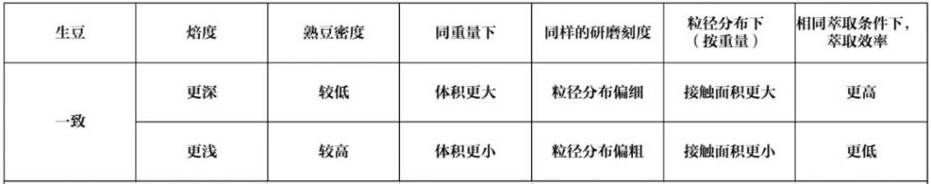 深烘的咖啡在相同的粒徑范圍(意味著基本相同的接觸面積)下,萃取效率有可能比淺烘更慢的。但這一特點無法中和體積帶來的萃取加速,再加上“深烘豆在研磨時更傾向于精細(xì)分布”,都支撐著“熟豆密度越低越容易萃取”這個說法。