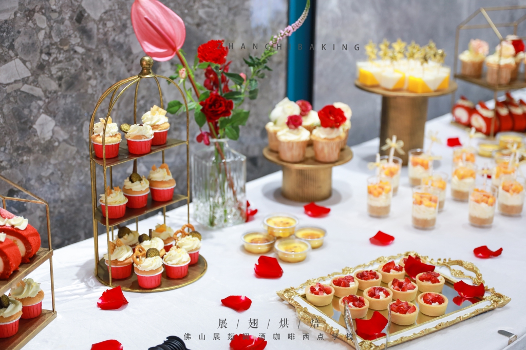 佛山市展翅調酒咖啡西點學院為其提供精美高端的甜品臺