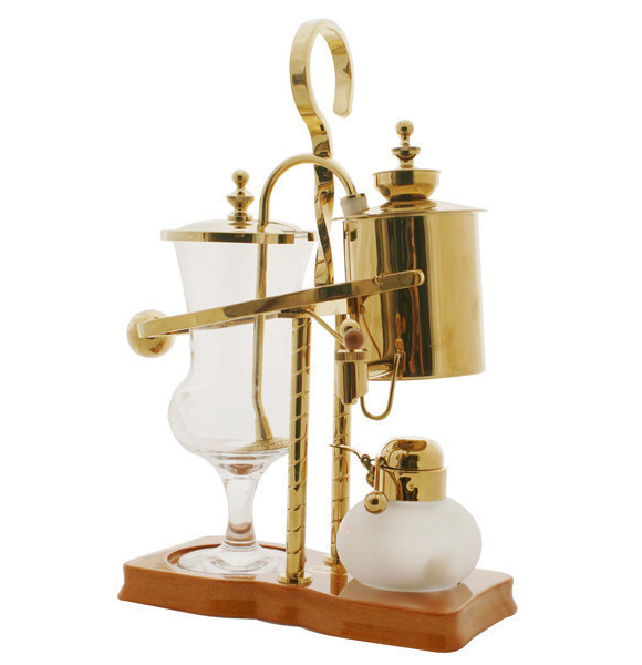 比利時(shí)皇家咖啡壺,又名「平衡式塞風(fēng)壺」(Balancing Syphon)。發(fā)明人是英國(guó)造船師傅 James Napier。比利時(shí)壺,不僅外觀(guān)精美、華麗而成為高檔工藝品,而且其工作原理奇特。