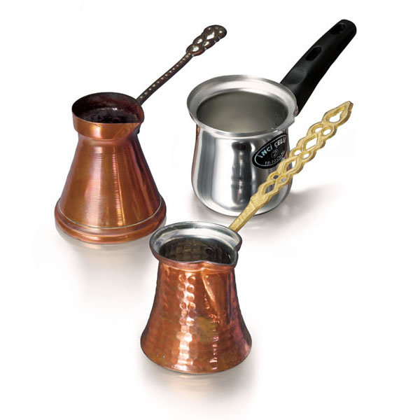 煮土耳其咖啡,用的是一只長(zhǎng)柄的,材質(zhì)為黃銅或銅,內(nèi)部鍍錫、上端邊緣稍向外歪曲的壺。這種壺在土耳其被稱為“杰士威”,美國(guó)商人稱它為“伊芙利克”。在希臘則被簡(jiǎn)化為“必奇”。土耳其式咖啡壺制出的咖啡很嗆口,這正是咖啡最“原始”的味道。 煮土耳其咖啡之前,應(yīng)先用熱水洗凈所用的土耳其咖啡杯??Х戎蠛弥髸?huì)泛起一層泡沫,向杯中倒入咖啡時(shí),要連同泡沫一起倒入在每一杯之中,這是沖煮咖啡專業(yè)的象征,也代表著一種榮譽(yù)和時(shí)尚。