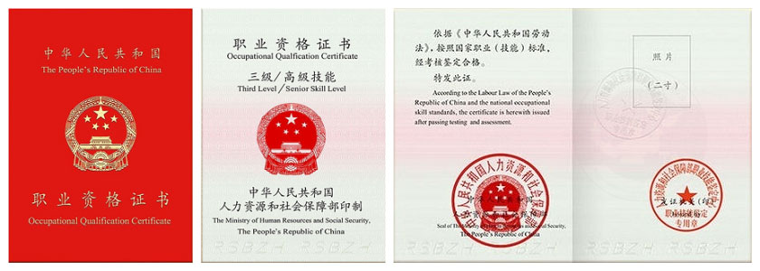 國家職業資格三級(高級樣板證書)