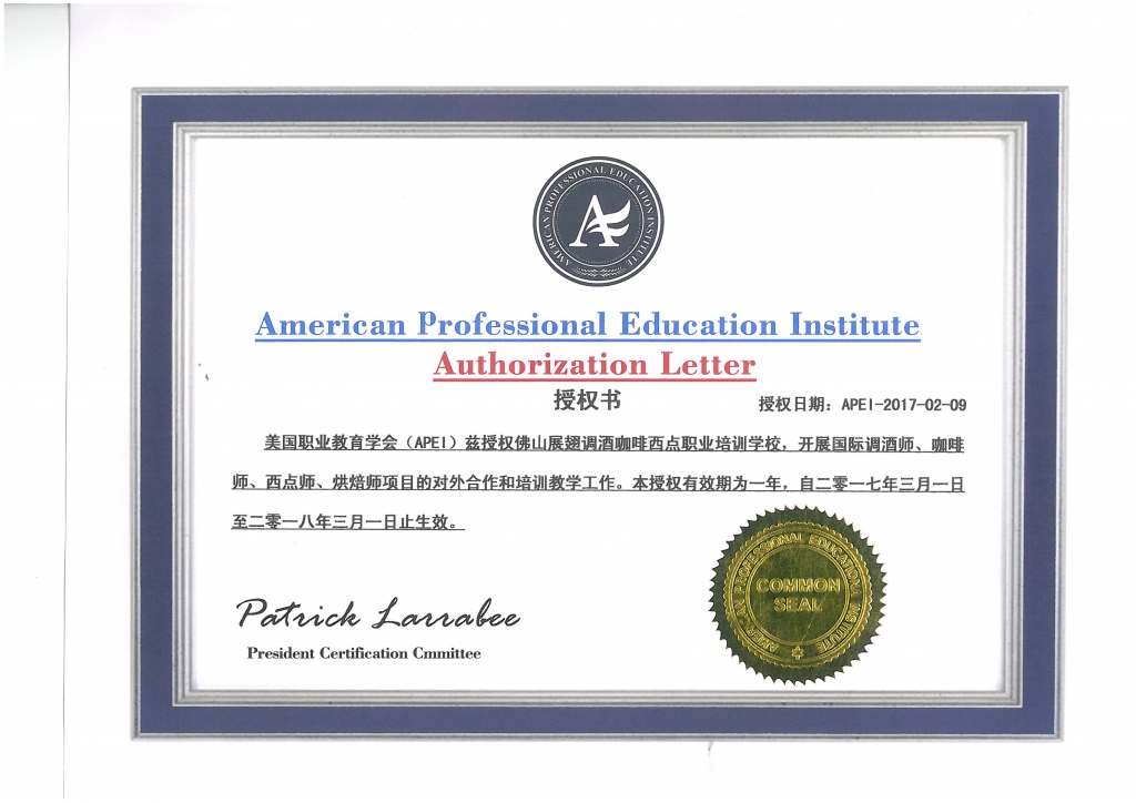 美國職業(yè)教育學(xué)會APEI調(diào)酒師、咖啡師、西點(diǎn)師職業(yè)資格證書